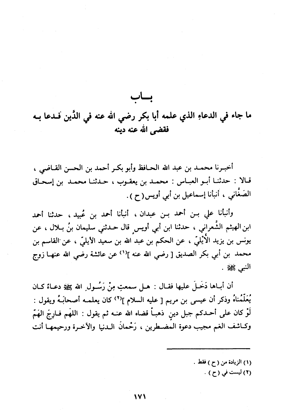 بَابُ مَا جَاءَ فِي الدُّعَاءِ الَّذِي عَلَّمَهُ أَبَا بَكْرٍ رَضِيَ اللهُ عَنْهُ فِي الدَّيْنِ فَدَعَا بِهِ فَقَضَى الله عَنْهُ دَيْنَهُ