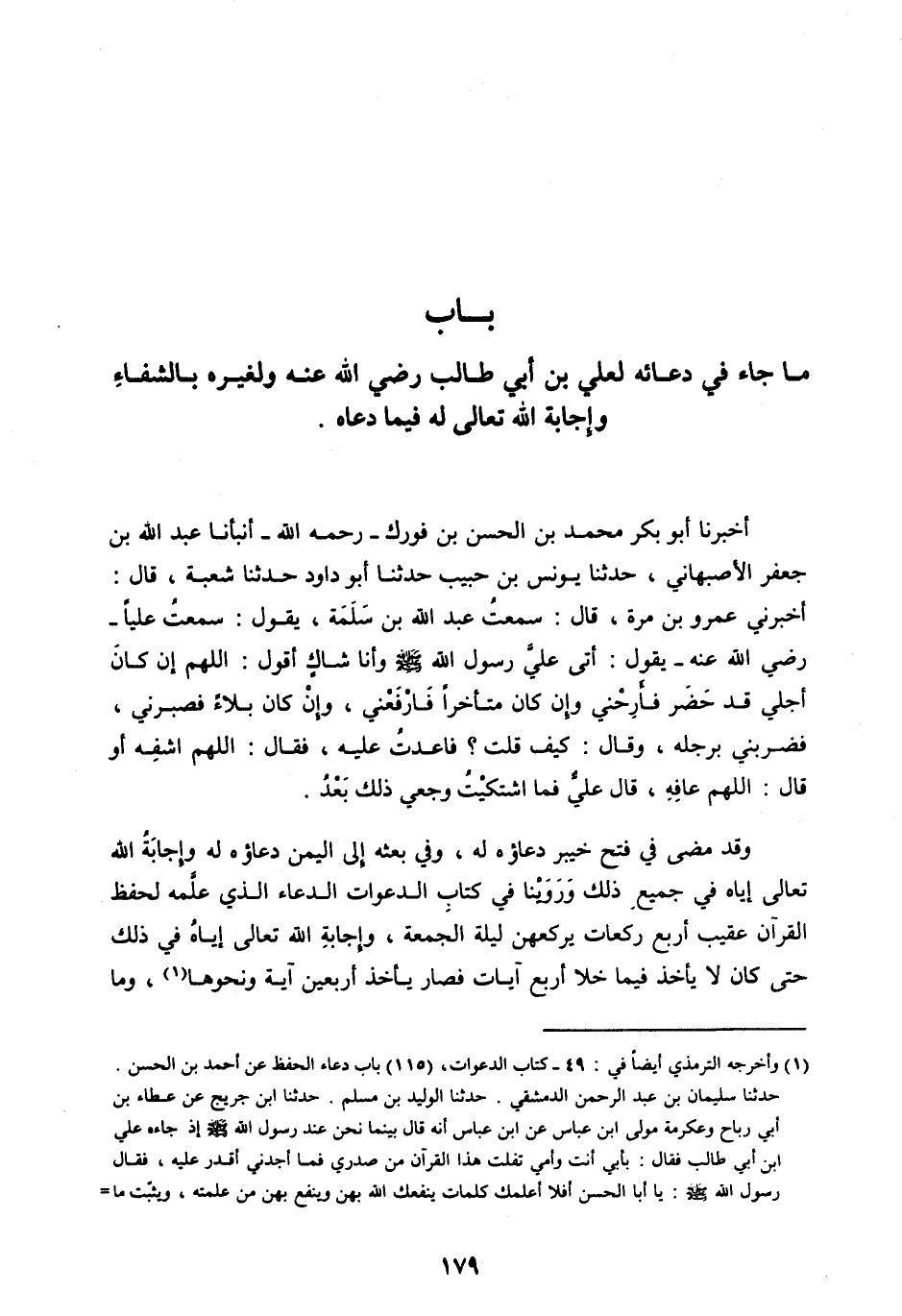 بَابُ مَا جَاءَ فِي دُعَائِهِ لِعَلِيِّ بْنِ أَبِي طَالِبِ رضي الله عنه وَلِغَيْرِهِ بِالشِّفَاءِ وَإِجَابَةِ اللهِ تَعَالَى لَهُ فِيمَا دَعَاهُ.