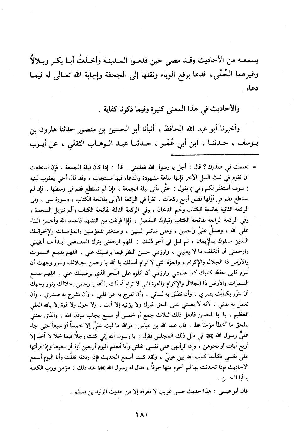 قال أبو عيسى: هذا حديث حسن غريب لا نعرفه إلا من حديث الوليد بن مسلم.