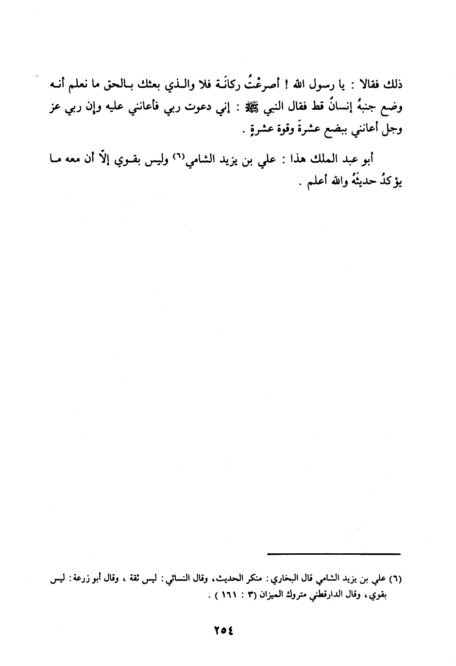 [ (6) ] عَلِيُّ بْنُ يَزِيدَ الشَّامِيُّ قال البخاري: منكر الحديث، وقال النسائي: ليس ثقة، وقال أبو زرعة: ليس بقوي، وقال الدارقطني متروك الميزان (3: 161) .