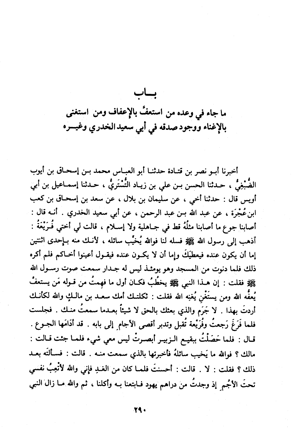 بَابُ مَا جَاءَ فِي وَعْدِهِ مَنِ اسْتَعَفَّ بِالْإِعْفَافِ وَمَنِ اسْتَغْنَى بِالْإِغْنَاءِ وَوُجُودِ صِدْقِهِ فِي أَبِي سَعِيدٍ الْخُدْرِيِّ وَغَيْرِهِ