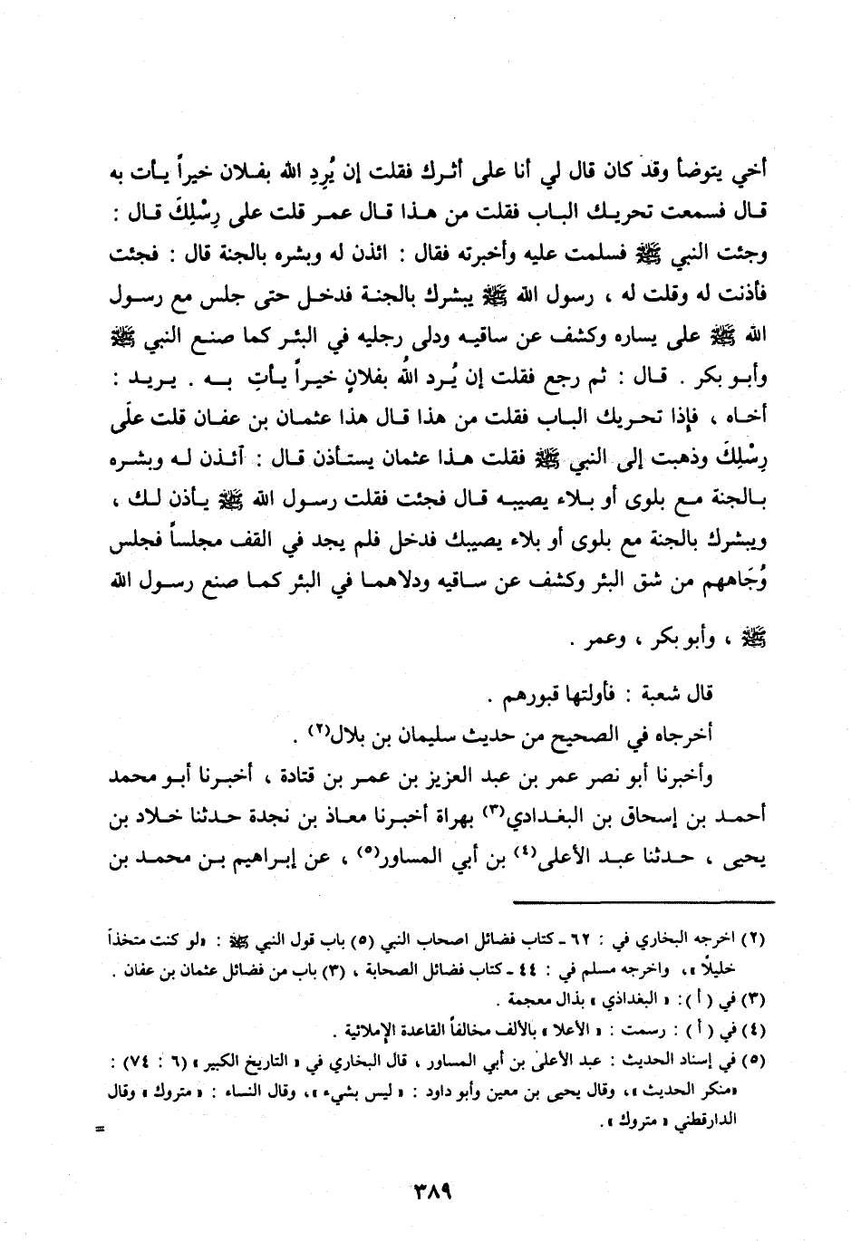 [ (2) ] أخرجه البخاري في: 62- كتاب فضائل اصحاب النبي (5) بَابُ قَوْلَ النَّبِيِّ صَلَّى اللهُ عَلَيْهِ وَسَلَّمَ: «لَوْ كنت متخذا خليلا» ، وأخرجه مسلم فِي: 44- كِتَابِ فَضَائِلِ الصَّحَابَةِ، (3) باب من فضائل عُثْمَانُ بْنُ عَفَّانَ.
