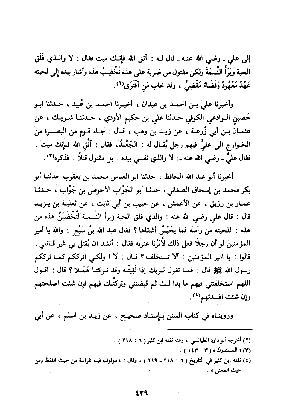 فَقَالَ عَلِيٌّ- رَضِيَ اللهُ عَنْهُ-: لَا وَالَّذِي نَفْسِي بِيَدِهِ. بَلْ مَقْتُولٌ قَتْلًا.