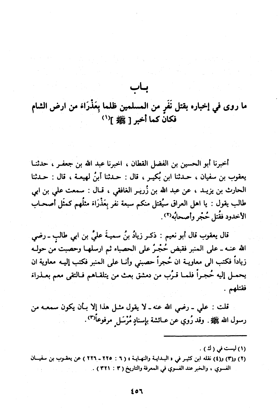 [ (2، 3) ] ونقله ابن كثير في «البداية والنهاية» (6: 225- 226) عن يَعْقُوبُ بْنُ سُفْيَانَ الْفَسَوِيُّ، والخبر عند الفسوي في المعرفة والتاريخ (3: 321) .