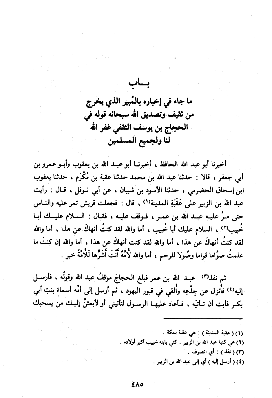 [ (2) ] هي كنية عَبْدِ اللهِ بْنِ الزُّبَيْرِ. كني بابنه خبيب أكبر أولاده.