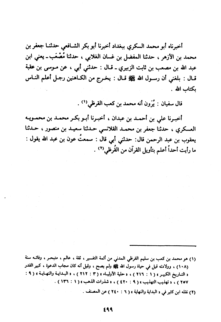 [ (1) ] هو محمد بن كعب بن سليم القرظي المدني من أئمة التفسير، ثقة، عالم، متبحر، وفاته سنة (108) ، وولادته قيل فِي حَيَاةِ رَسُولِ اللهِ صَلَّى اللهُ عَلَيْهِ وسلم ولم يصح، وقيل أنه كان مجاب الدعوة، كبير القدر «التاريخ الكبير» (1: 216) ، «حلية الأولياء» (3: 212) ، «البداية والنهاية» (9: