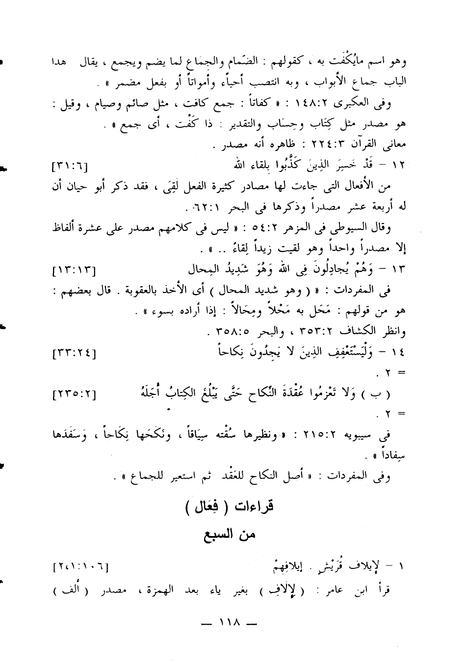 ثلاثيًا يقال: ألف الرجل إلفًا وإلافا. وقرأ أبو جعفر بياء ساكنة من غير همز قيل: إنه لما أبدل الثانية ياء حذف الأولى حذفًا على غير قياس، وقرأ أبو جعفر: (إلافهم) بهمزة مكسورة من غير ياء، مصدر ألف الثلاثي.