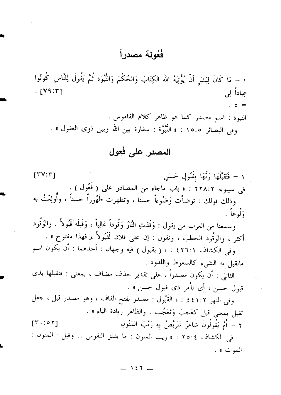 وفي البحر 102:1: (الوقود: اسم لما يوقد به، وقد سمع مصدرًا, وهو أحد المصادر التي جاءت على (فَعُول)، وهي قليلة، لم يحفظ منها فيما ذكر الأستاذ أبو الحسن بن عصفور سوى هذا والوضوء والطهور والولوع والقبول).