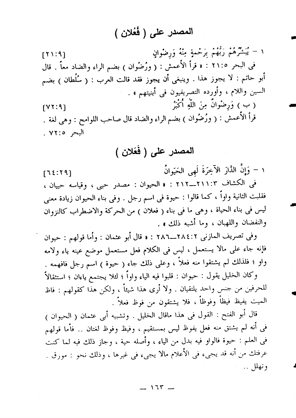 وفي البحر 26:2: (يحتاج في تحقيق أنه مصدر إلى صحة نقل، لأن (فعلانًا) ليس مصدر فعل المتعدى، إلا أن يشذ والأولى أن يكون مرتجلاً).