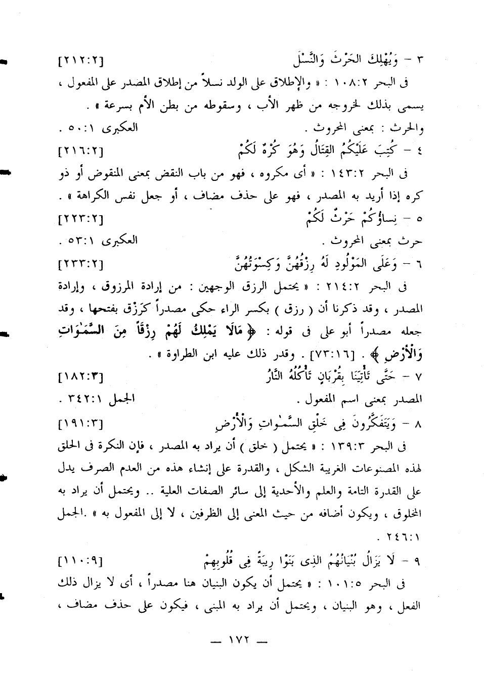 في البحر 112:5: (النيل: مصدر، فاحتمل أن يبقى على موضوعه، واحتمل أن يراد به المنيل).