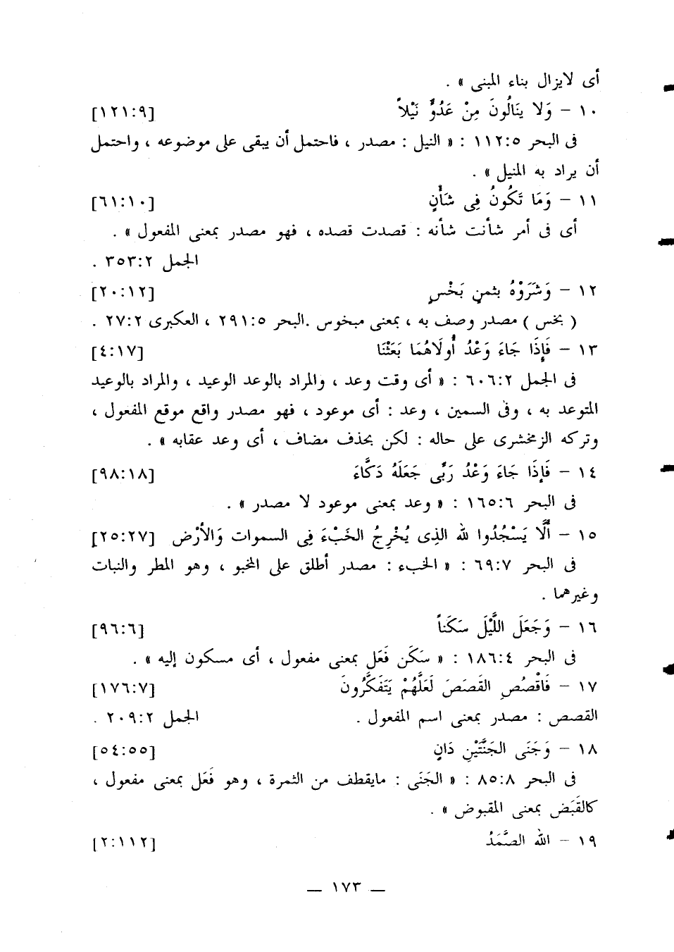 في البحر 231:4: (الحجر: بمعنى المحجور كالذبح والطحن، يستوي في الوصف به الواحد والجمع، والمذكر والمؤنث، لأن حكمه حكم الأسماء غير الصفات، قاله الزمخشري). الكشاف 71:2