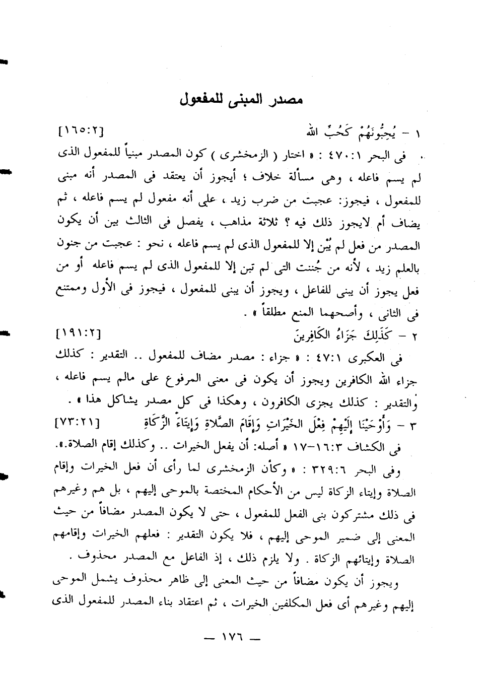 في البحر 286:7: (أضيف المصدر إلى المفعول وقدره الزمخشري مبنيًا للمفعول الذي لم يسم فاعله فقال: أن يجاوزوا الضعف، والمصدر في كونه يبنى للمفعول الذي لم يسم فاعله فيه خلاف والصحيح المنع). الكشاف 586:3