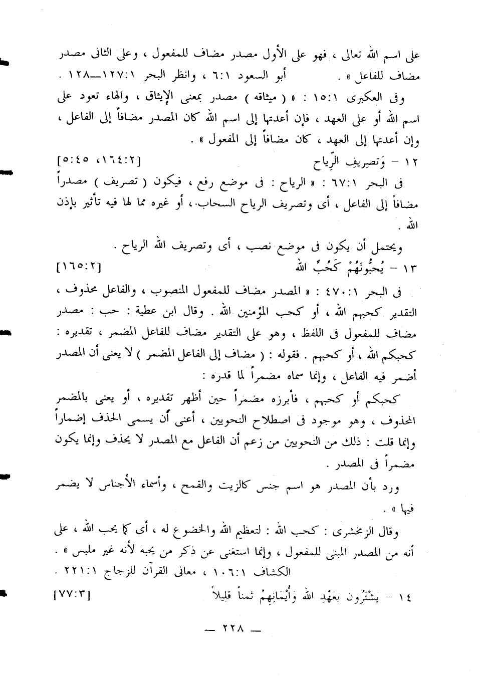 في الجمل 290:1: (يجوز أن يكون المصدر مضافاً لفاعله، على أن الضمير يعود على (من) أو مضافاً إلى مفعوله على أن الضمير يعود إلى الله).