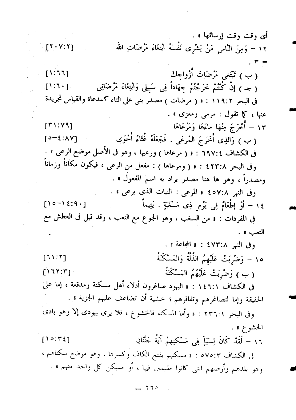 وفي البحر 299:7: (قرأ الجمهور (في مساكنهم) جمعاً, والنخعي وحمزة وحفص مفرداً بفتح الكاف، والكسائي مفرداً بكسرها، وهي قراءة الأعمش وعلقمة. وقال أبو الحسن: كسر الكاف لغة فاشية وهي لغة الناس اليوم، والفتح لغة الحجاز وهي اليوم قليلة، وقال الفراء: هي لغة يمانية فصيحة، فمن قرأ بالجمع فظاهر لأن كل واحد له مسكن، ومن أفرد ينبغي أن يحمل على المصدر، أي في سكناهم، حتى لا يكون مفرداً يراد به الجمع، لأن سيبويه يرى ذلك ضرورة نحو, كلوا في بعض بطنكم تعفوا). معاني القرآن 357:2