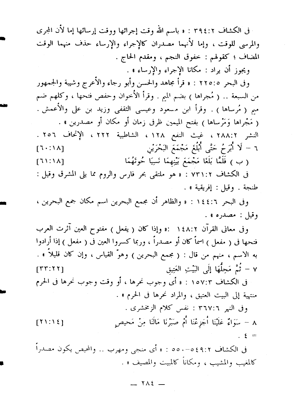 في البحر 3: 354: «أخبر تعالى أن المكان الذي يأوون إليه، ويستقرون فيه هو جهنم وأنهم لا يجدون عنها مراغًا يروغون إليه».