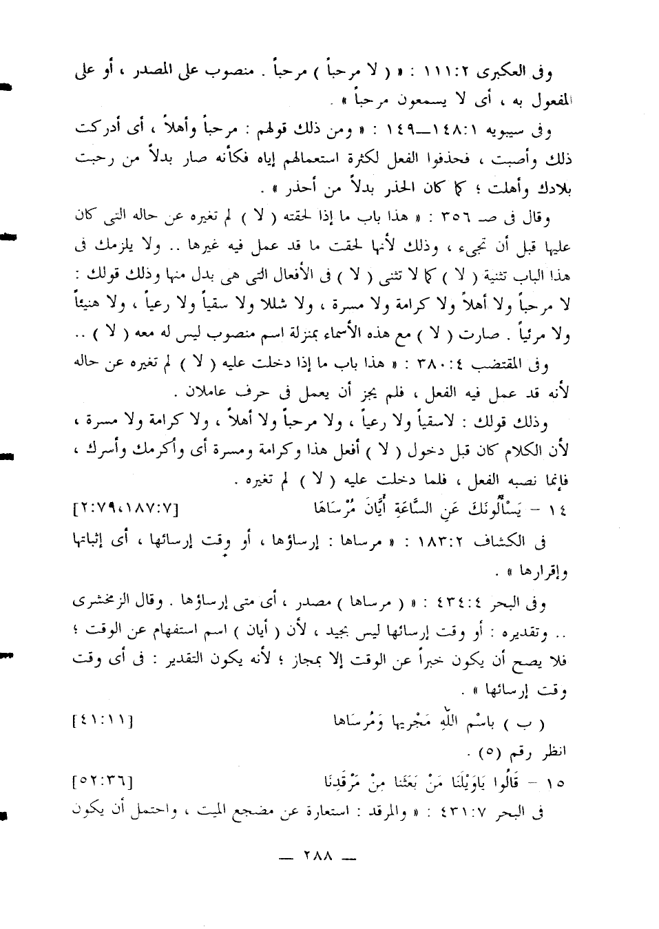 في البحر 7: 269: «من أفرد (مسكنهم) ينبغي أن يحمل على المصدر، أي في سكناهم، حتى لا يكون مفردًا يراد به الجمع، لأن سيبويه يرى ذلك ضرورة».