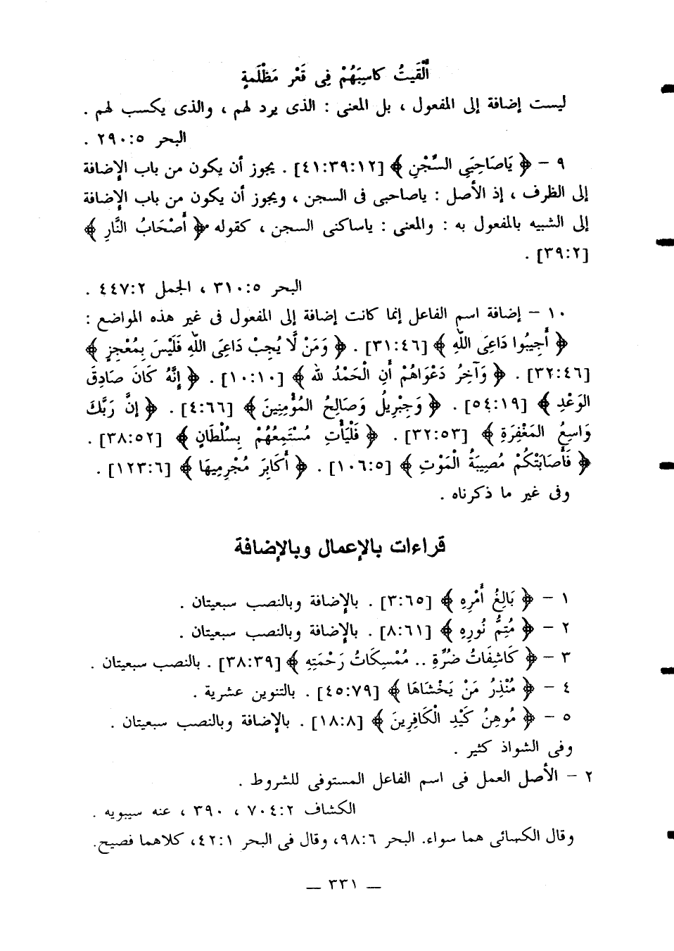 5 - أضيف اسم الفاعل إلى الضمير في آيات كثيرة جمعت على حدة وبين النحويين خلاف في موقع الضمير من الإعراب.