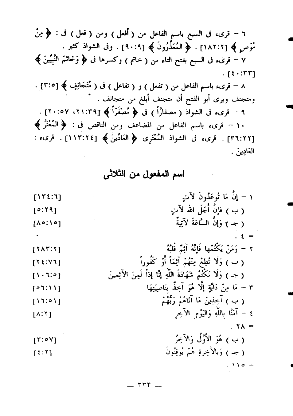 ب- وإن يأت الأحزاب يودوا لو أنهم بادون في الأعراب [33: 20].