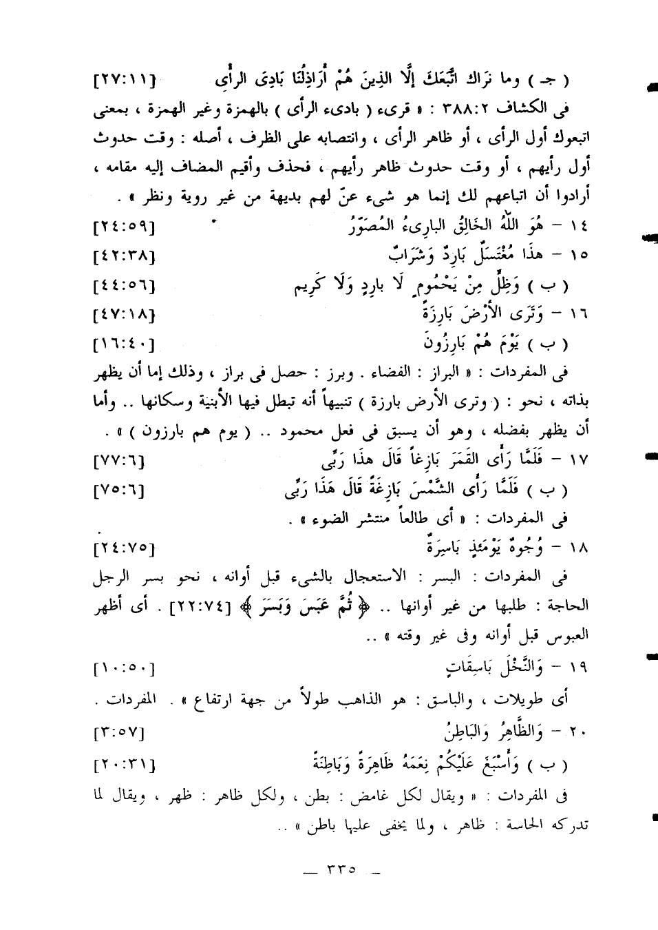 في المفردات: «وقوله: {والباقيات الصالحات} أي ما يبقى ثوابه للإنسان من الأعمال».