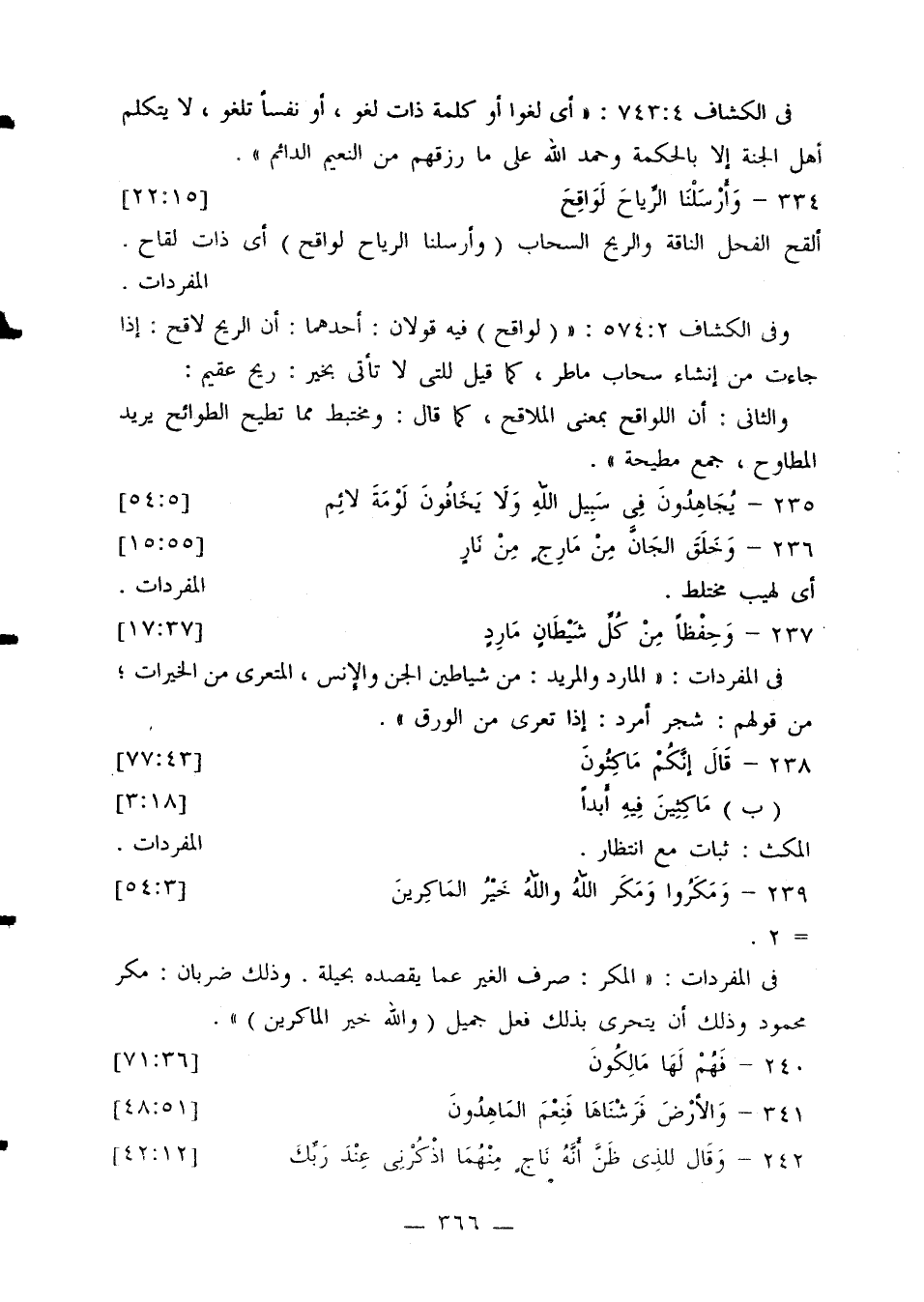 في المفردات: «وقيل: أراد بها النجوم الخارجات من الشرق إلى الغرب بسير الفلك، أو السائرات من المغرب إلى المشرق بسير أنفسها. وقيل: الملائكة التي تنزع أرواح الناس».