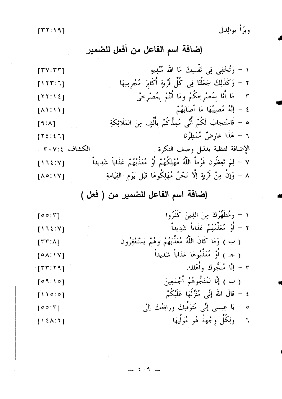 إضافة اسم الفاعل إلى الضمير من (تفعل)