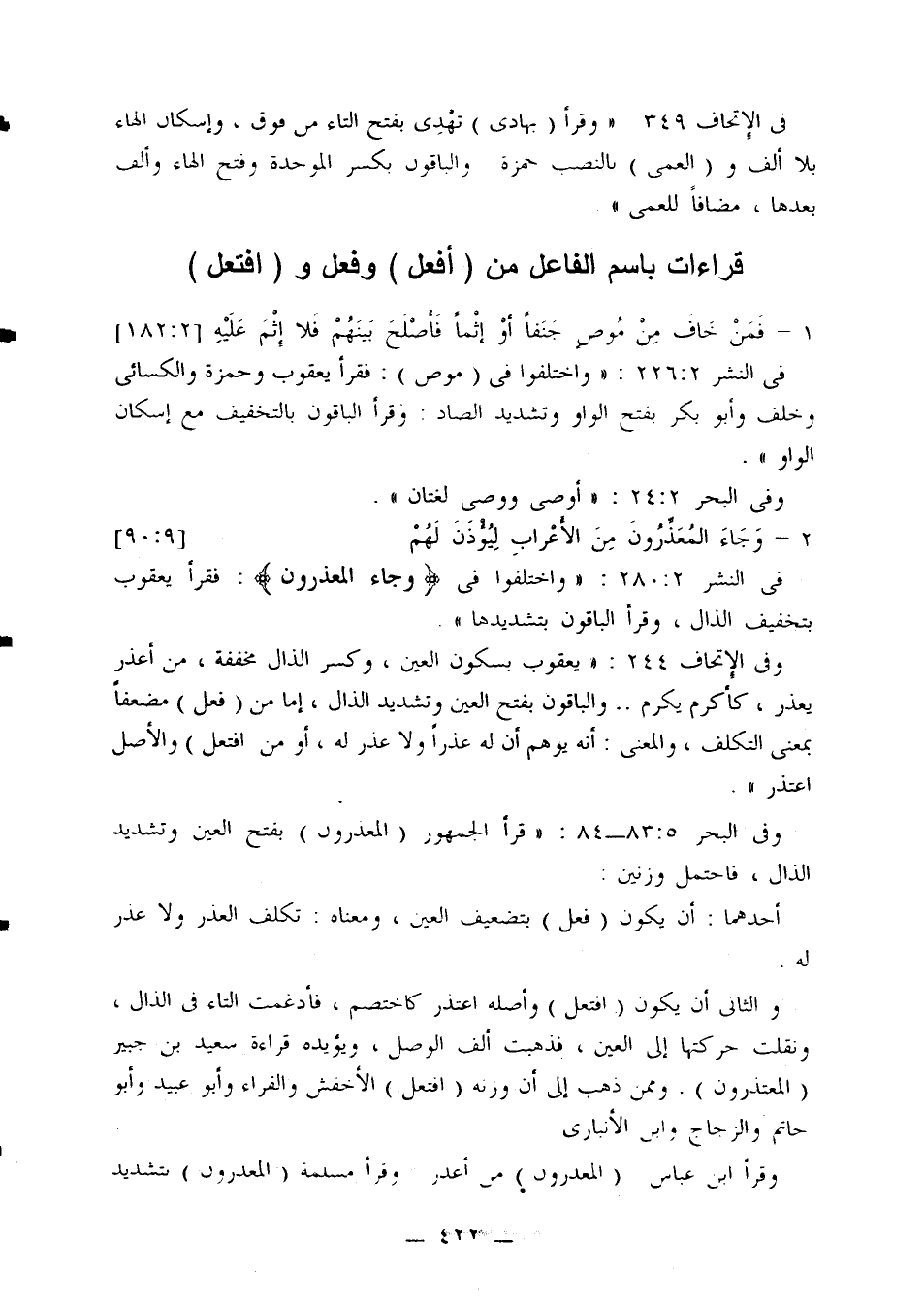 قراءات باسم فاعل من (أفعل) و (أفعال)