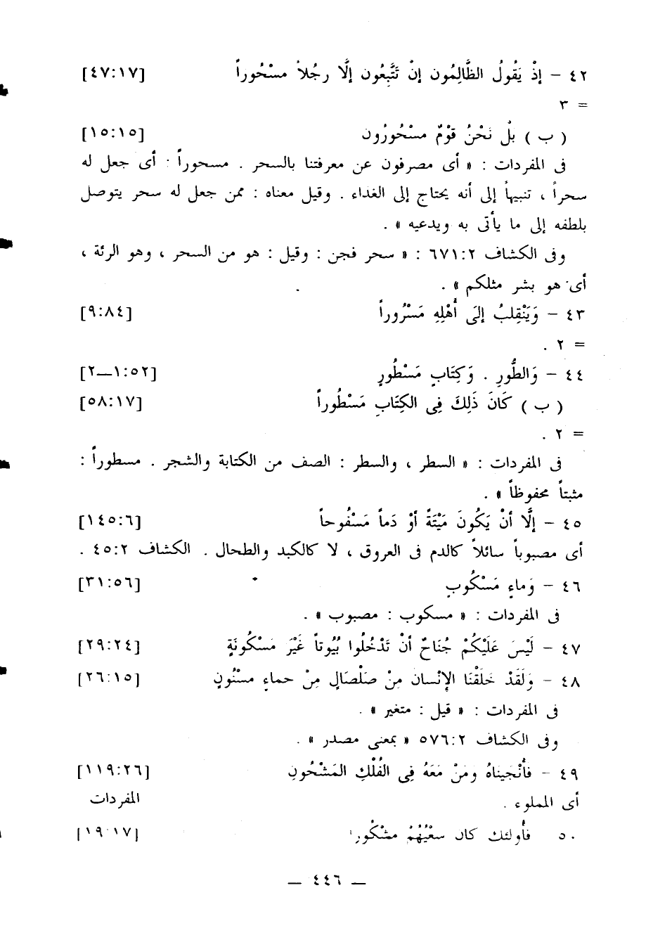 وفي الكشاف 2: 428: «{يوم مشهود}: مشهود فيه، فاتسع في الظرف بإجرائه مجرى المفعول به كقوله: ويوم شهدناه سليما وعامرًا.