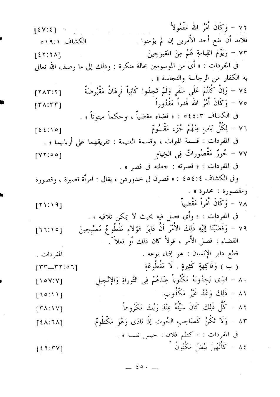 أكثر ما جاء الإمداد في المحبوب، والمد في المكروه، المفردات.