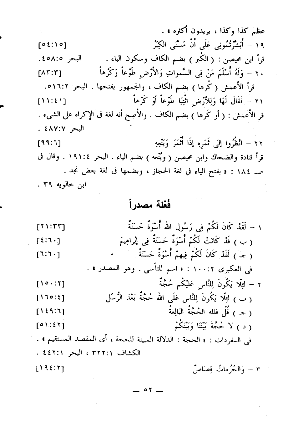 في البحر 8: 245: " الجمهور (دولة) بضم التاء، والسلمي بفتحها. قال عيسى بن عمر: هما بمعنى واحد، وقال الكسائي وحذاق البصرة: الفتح في الملك، بضم الميم لأنها الفعلة في الدهر، والضم الملك بكسر الميم ".