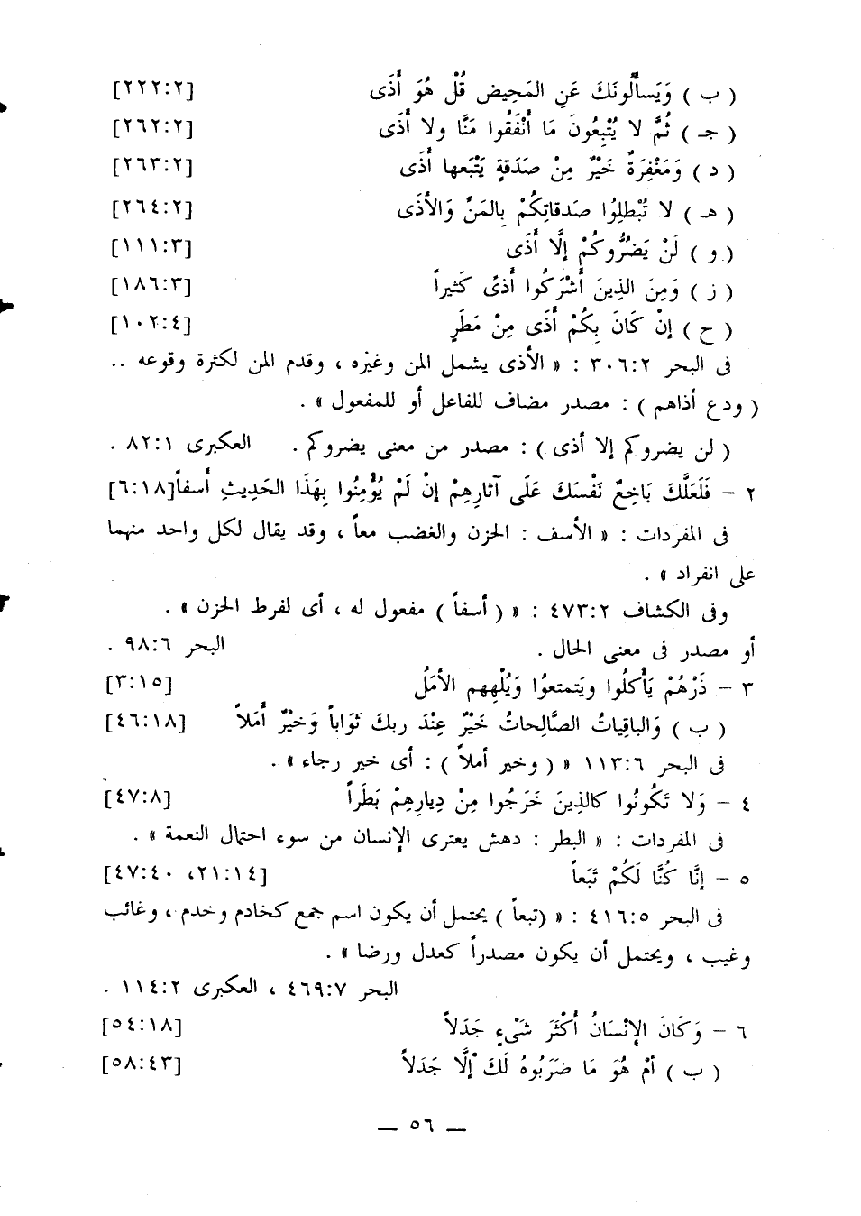 في الكشاف 2: 489: «أكثر الأشياء التي يتأتى منها الجدل، إن فصلتها واحدًا بعد واحد خصومة ومماراة بالباطل. وانتصب (جدلاً) على التمييز، يعني أن جدل الإنسان أكثر من جدل كل شيء». البحر 6: 138 - 139.