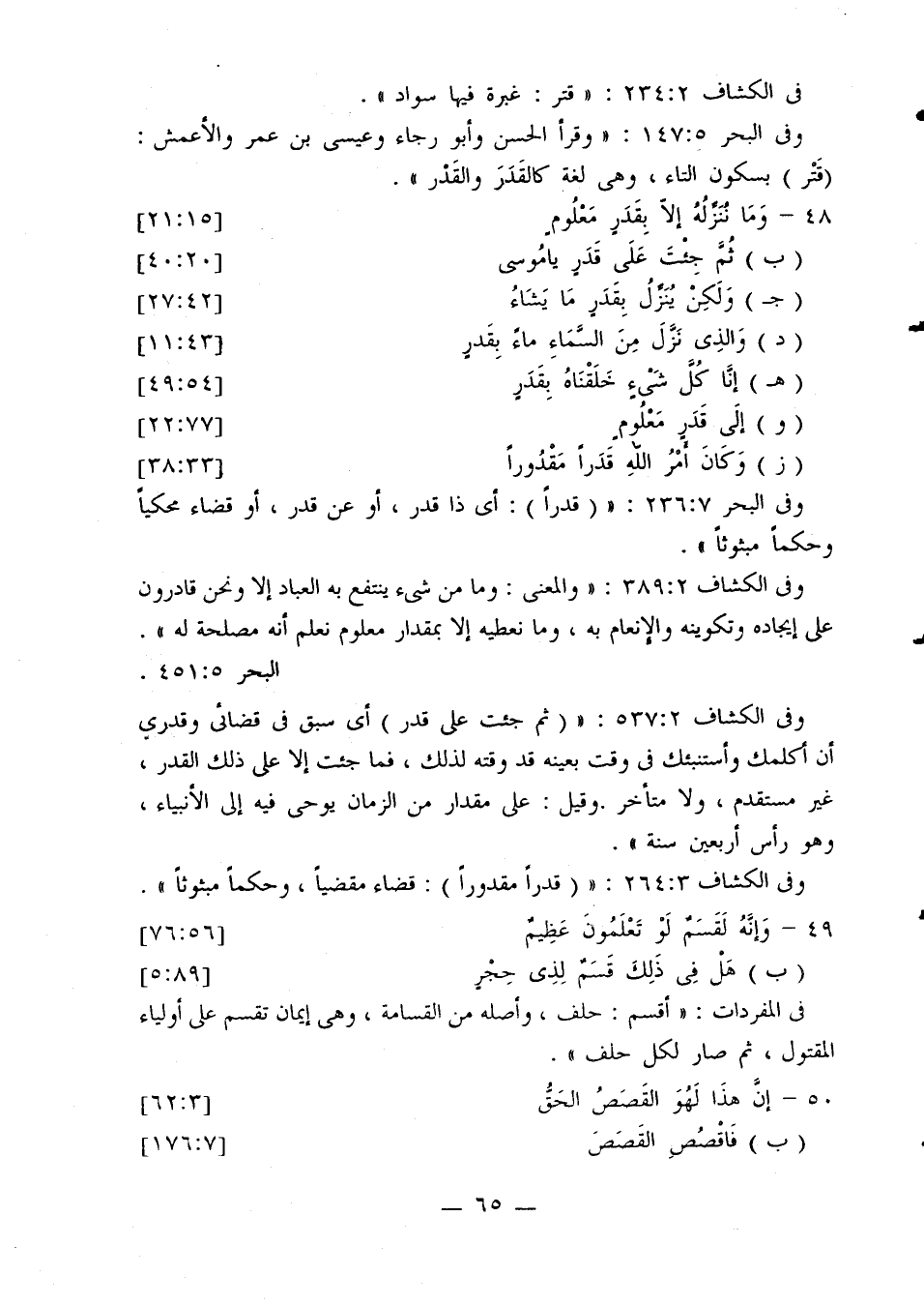 وفي البحر 5: 278 - 279: «(أحسن القصص). القصص: مصدر واسم مفعول، إما لتسميته بالمصدر، وإما لكون الفعل للمفعول كالقبض والنغص والقصص هنا يحتمل الأوجه الثلاثة. فإن كان المصدر فالمراد بكونه أحسن أنه اقتص على أبدع طريقة، وأحسن أسلوب، ألا ترى أن هذا الحديث مقتص في كتب الأولين وفي كتب التواريخ، ولا نرى اقتصاصه في كتاب منها مقاربًا لاقتصاصه في القرآن.