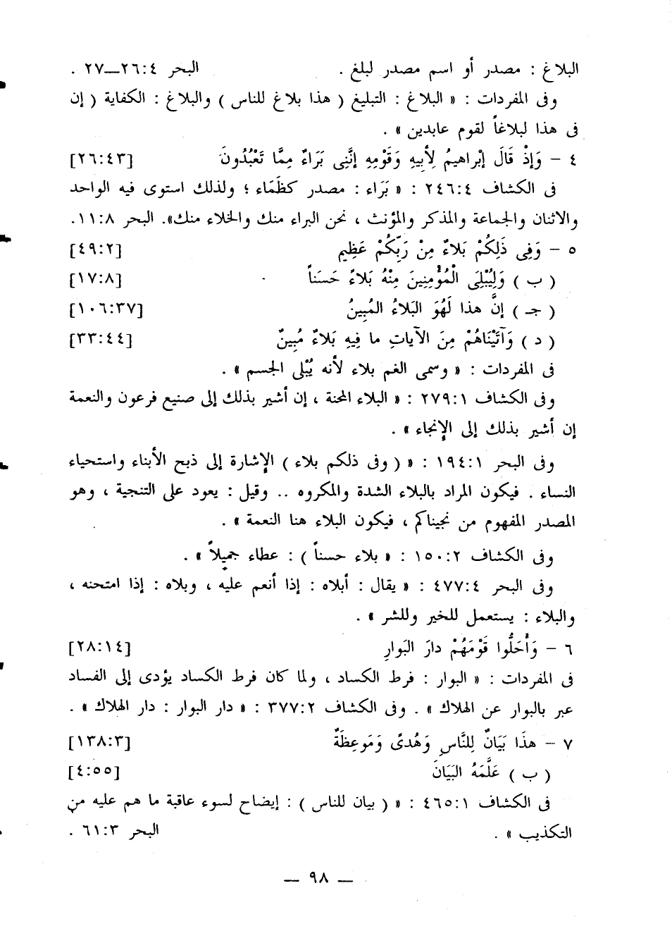 وفي الكشاف 4: 43: «البيان: وهو المنطق الفصيح للعرب عما في الضمير».
