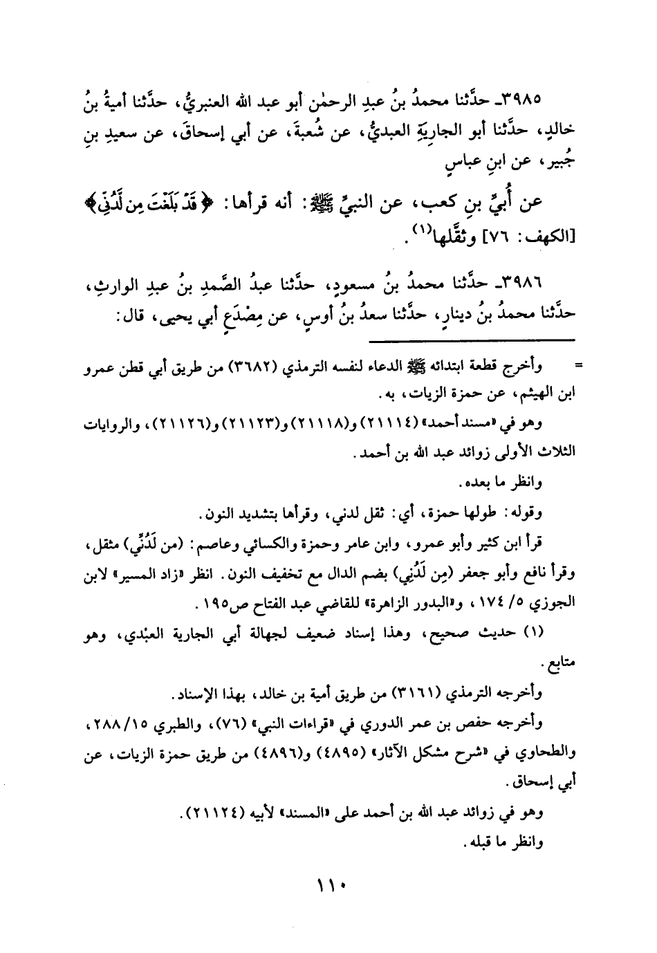 عن أُبيِّ بنِ كعب، عن النبيَّ -صلَّى الله عليه وسلم-: أنه قرأها: {قَدْ بَلَغْتَ مِنْ لَدُنِّي}