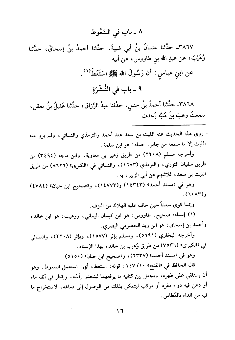 عن ابنِ عباسٍ؟ أن رَسُولَ الله - اسْتَعَطَ (¬١).