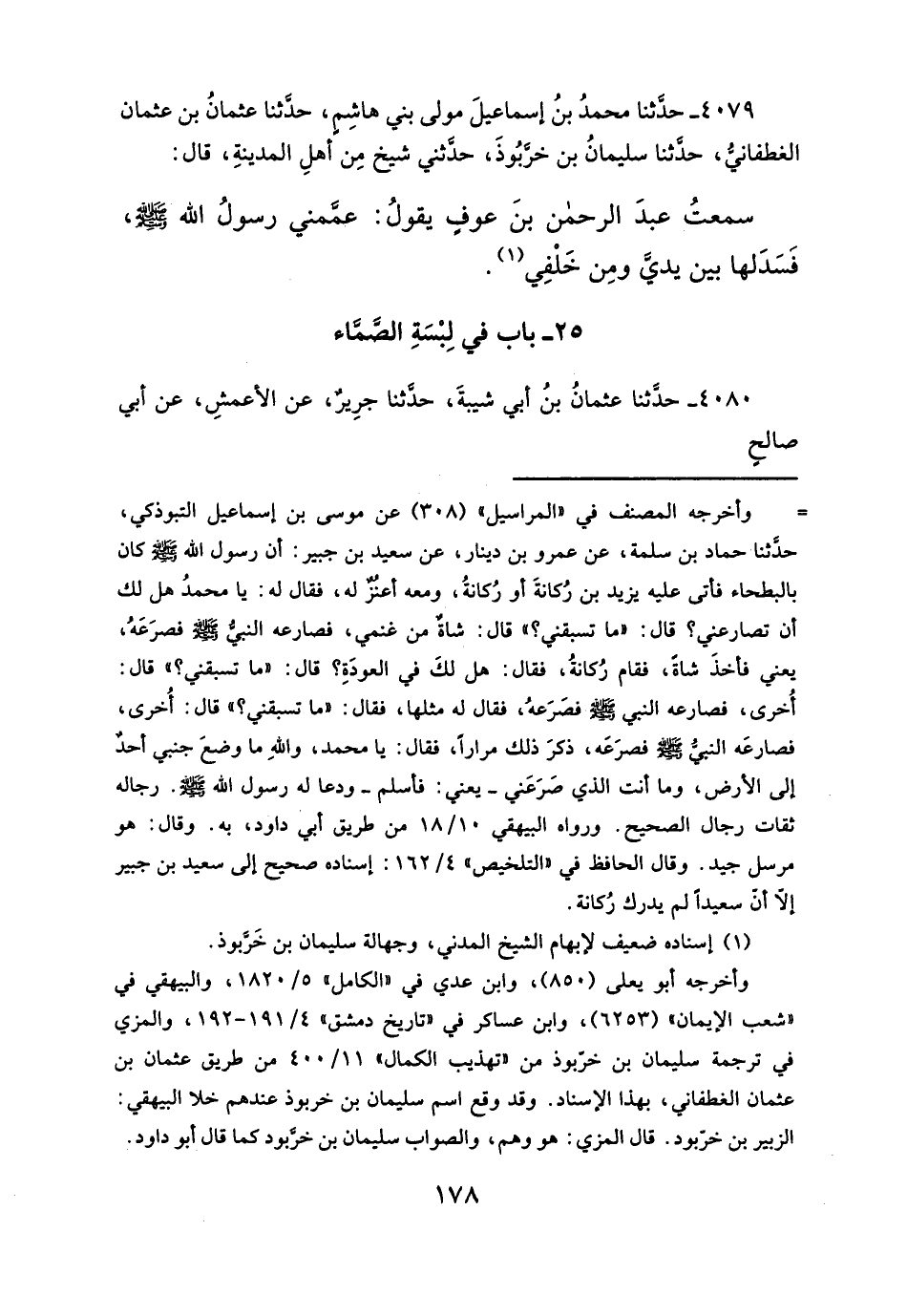 سمعتُ عبدَ الرحمن بنَ عوفٍ يقولُ: عمَّمني رسولُ الله - صلَّى الله عليه وسلم -، فَسَدَلها بين يديَّ ومِن خَلْفِي (¬١).