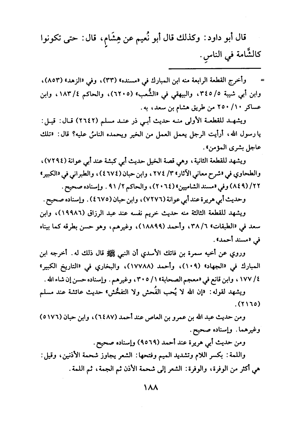 قال أبو داود: وكذلك قال أبو نُعيم عن هِشَامٍ، قال: حتى تكونوا كالشَّامة في الناسِ.