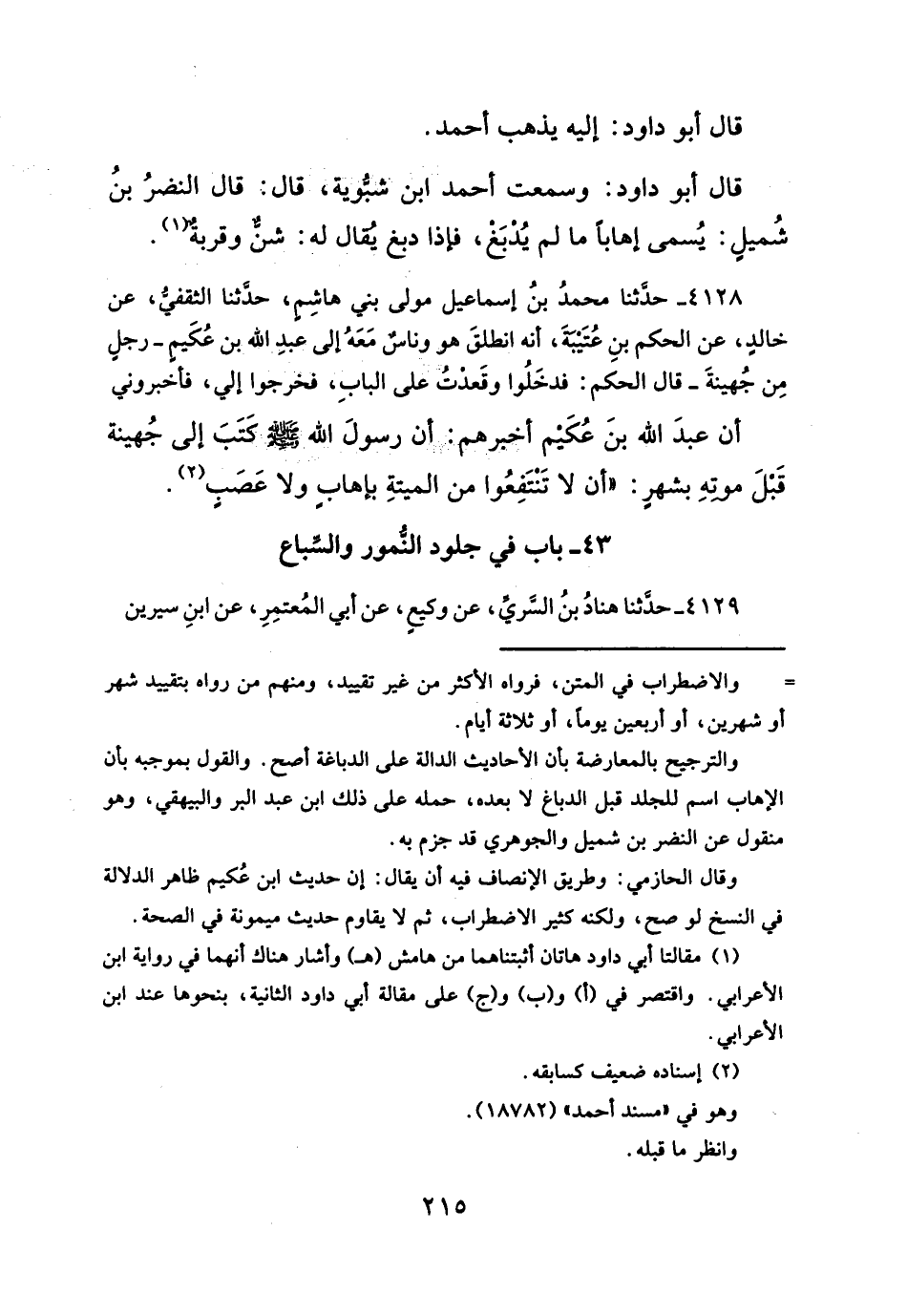 ٤٣ - باب في جلود النُّمور والسِّباع