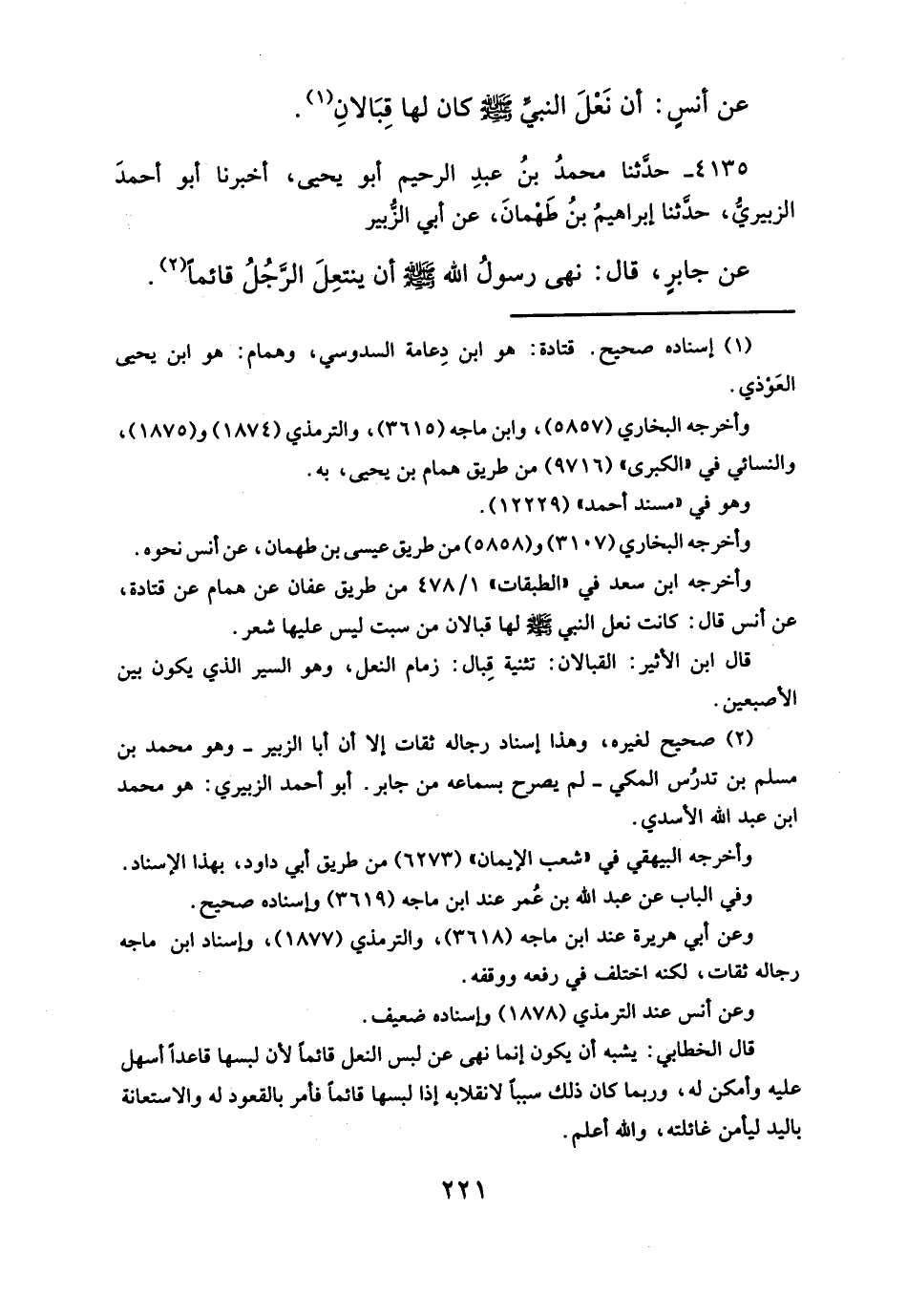 عن أنسٍ: أن نَعْلَ النبيِّ - صلَّى الله عليه وسلم - كان لها قِبَالانِ (¬١).