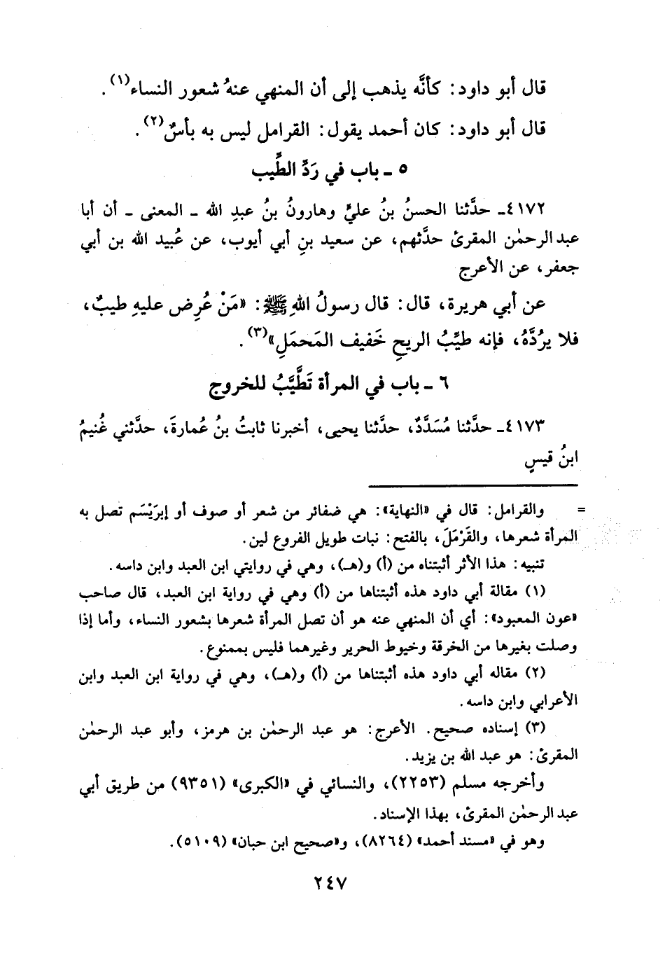 قال أبو داود: كان أحمد يقول: القرامل ليس به بأسٌ (¬٢).