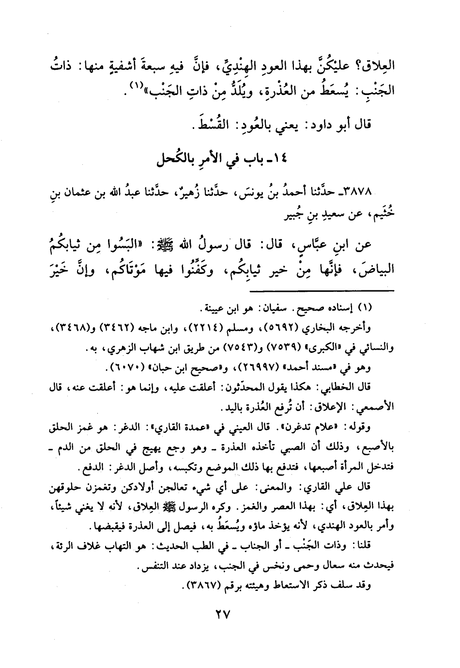 قال أبو داود: يعني بالعُودِ: القُسْطَ.