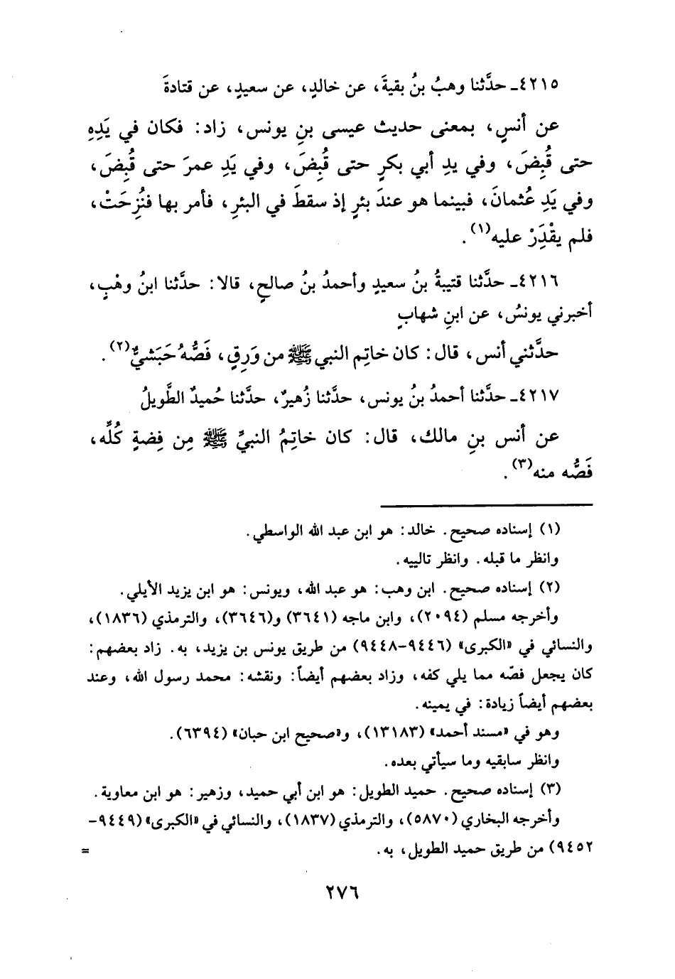 ٤٢١٥ - حدَّثنا وهبُ بنُ بقيةَ، عن خالدٍ، عن سعيدٍ، عن قتادةَ