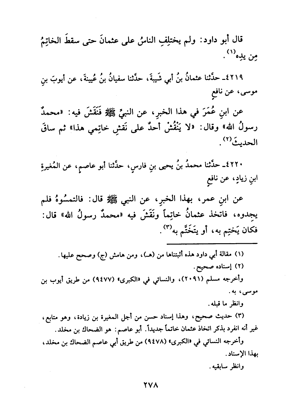 قال أبو داود: ولم يختلِفِ الناسُ على عثمانَ حتى سقطَ الخاتِمُ مِن يدِه (¬١)