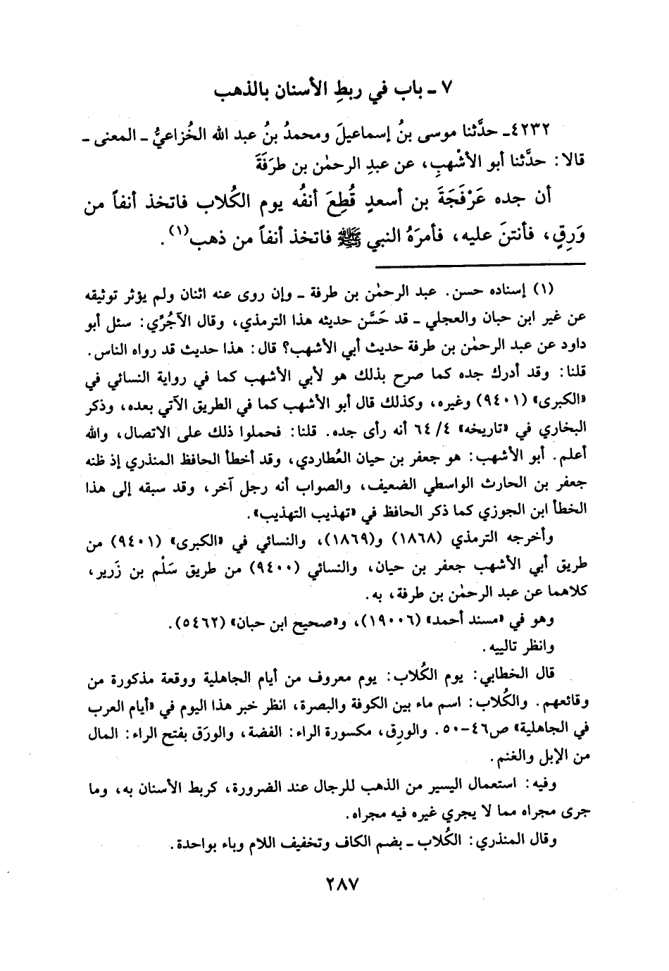 ٧ - باب في ربطِ الأسنان بالذهب