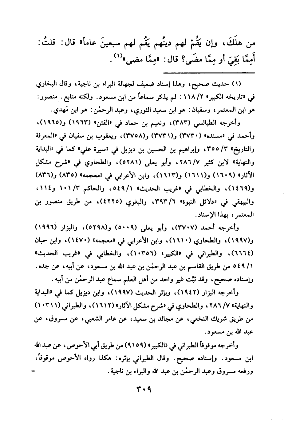 من هلَكَ، وإن يَقُم لهم دينُهم يَقُم لهم سبعينَ عاماً" قال: قلتُ: أَمِمَّا تقِيَ أو مِمَّا مضَى؟ قال: "مِمَّا مضى" (¬١).