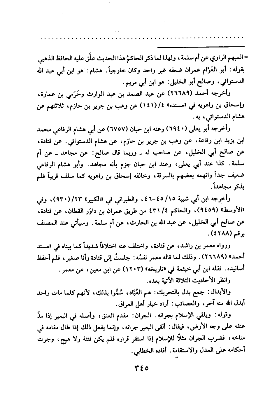 = المبهم الراوي عن أم سلمة، ولهذا لما ذكر الحاكمُ هذا الحديث علَّق عليه الحافظ الذهبي بقوله: أبو العَوَّام عمران ضعفه غير واحد وكان خارجياً. هشام: هو ابن أبي عبد الله الدستوائي، وصالح أبو الخليل: هو ابن أبي مريم.