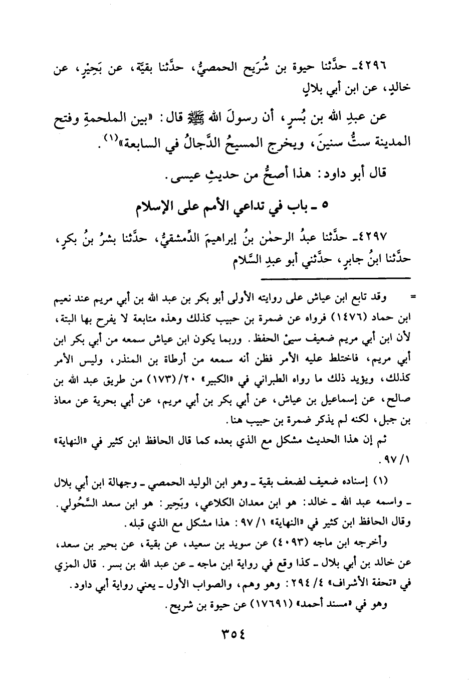٤٢٩٦ - حدَّثنا حيوة بن شُرَيح الحمصيُّ، حدَّثنا بقيَّة، عن بَحِيْرٍ، عن خالدٍ، عن ابن أبي بلالٍ
