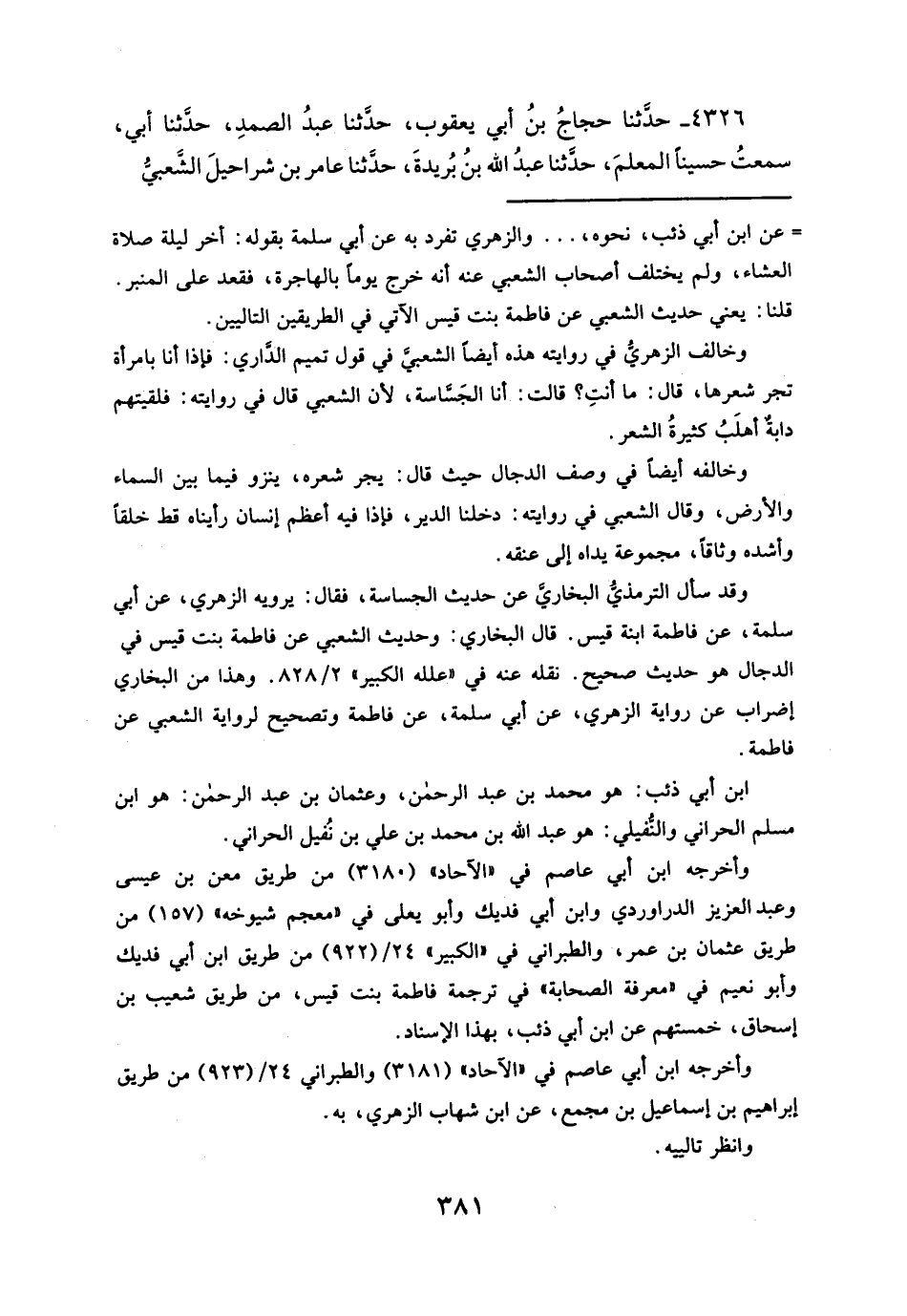 ٤٣٢٦ - حدَّثنا حجاجُ بنُ أبي يعقوب، حدَّثنا عبدُ الصمدِ، حدَّثنا أبي، سمعتُ حسيناً المعلمَ، حدَّثنا عبدُ الله بنُ بُريدةَ، حدَّثنا عامر بن شراحيلَ الشَّعبيُّ