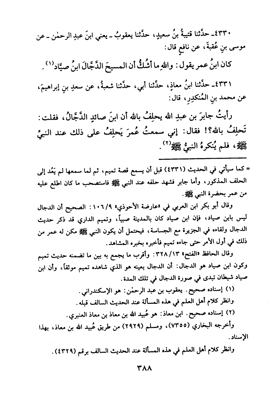 كان ابنُ عمر يقول: واللهِ ما أشُكُّ أن المسيحَ الدَّجَّالَ ابنُ صيَّاد (¬١).