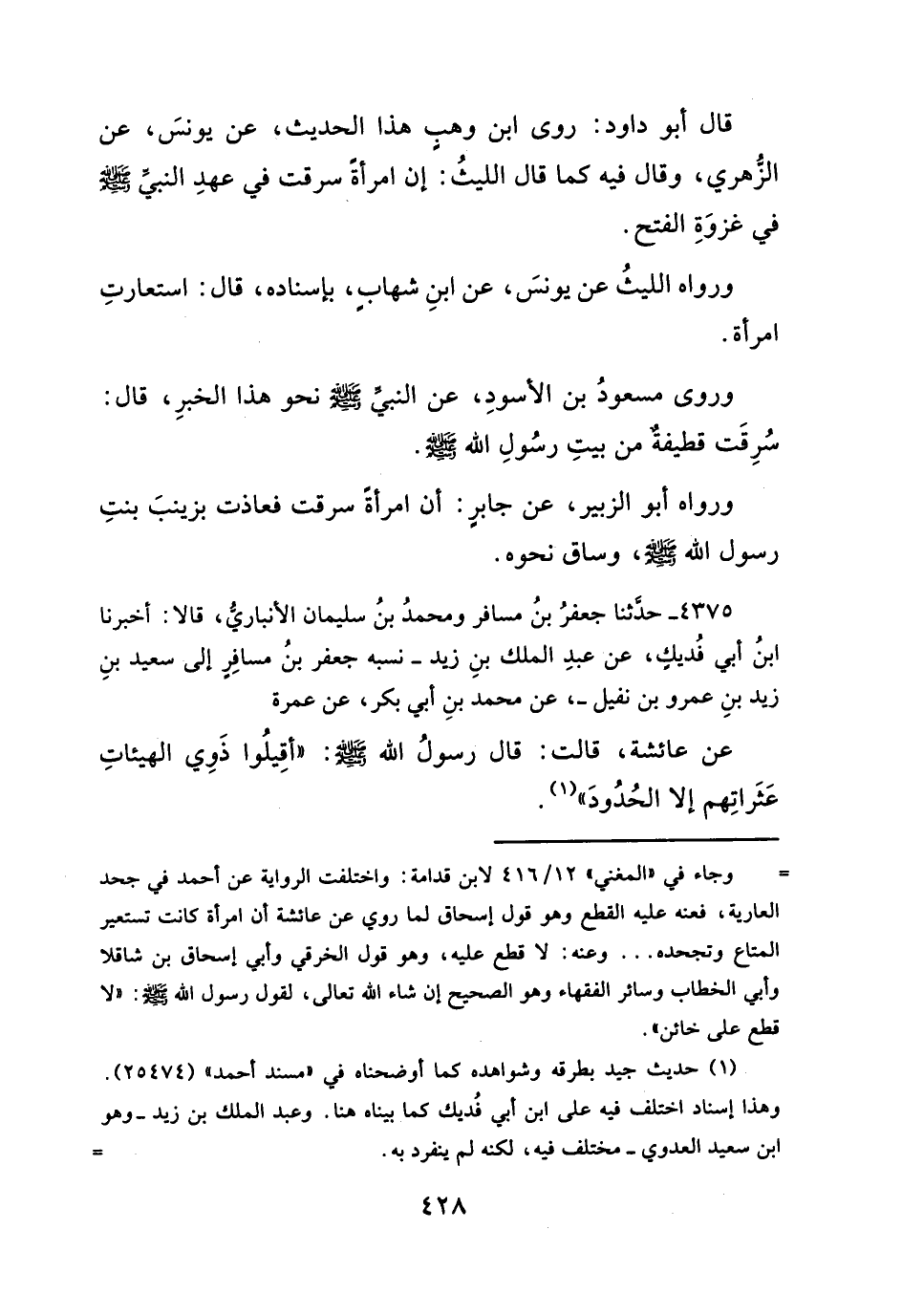 قال أبو داود: روى ابن وهبٍ هذا الحديث، عن يونسَ، عن الزُّهري، وقال فيه كما قال الليثُ: إن امرأةً سرقت في عهدِ النبي - صلَّى الله عليه وسلم - في غزوَةِ الفتح.