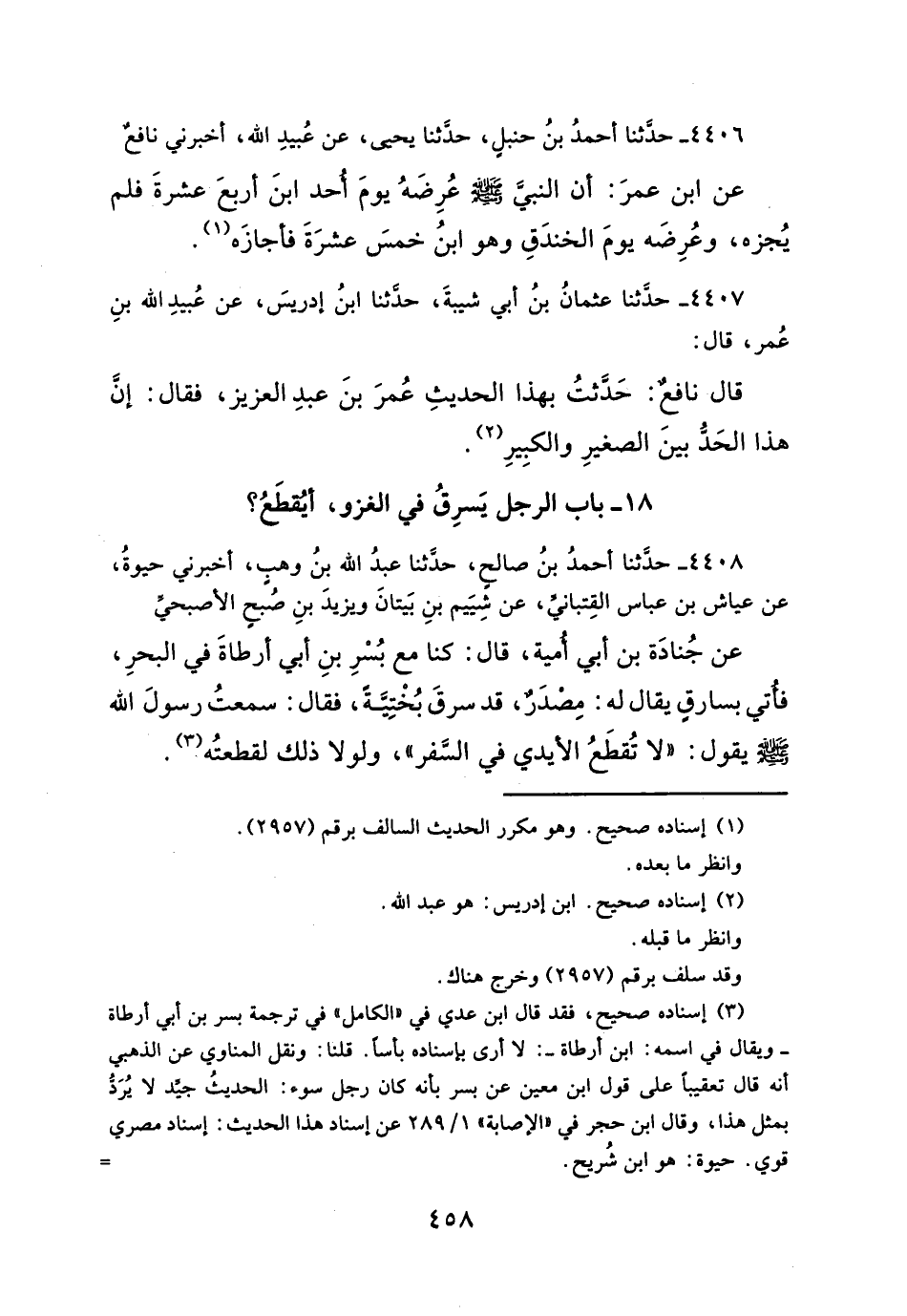 ٤٤٠٦ - حدَّثنا أحمدُ بنُ حنبل، حدَّثنا يحيى، عن عُبيدِ الله، أخبرني نافعٌ